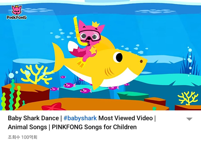 '핑크퐁 아기상어 댄스(Baby Shark Dance)'가 유튜브 역사상 첫 '100억 조회수'를 기록했습니다.
