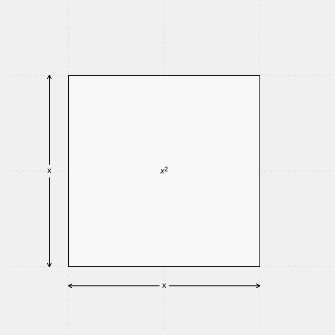 가로와 세로 길이가 모두 $x$인 정사각형이 있다고 해보겠습니다.